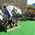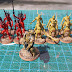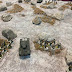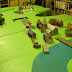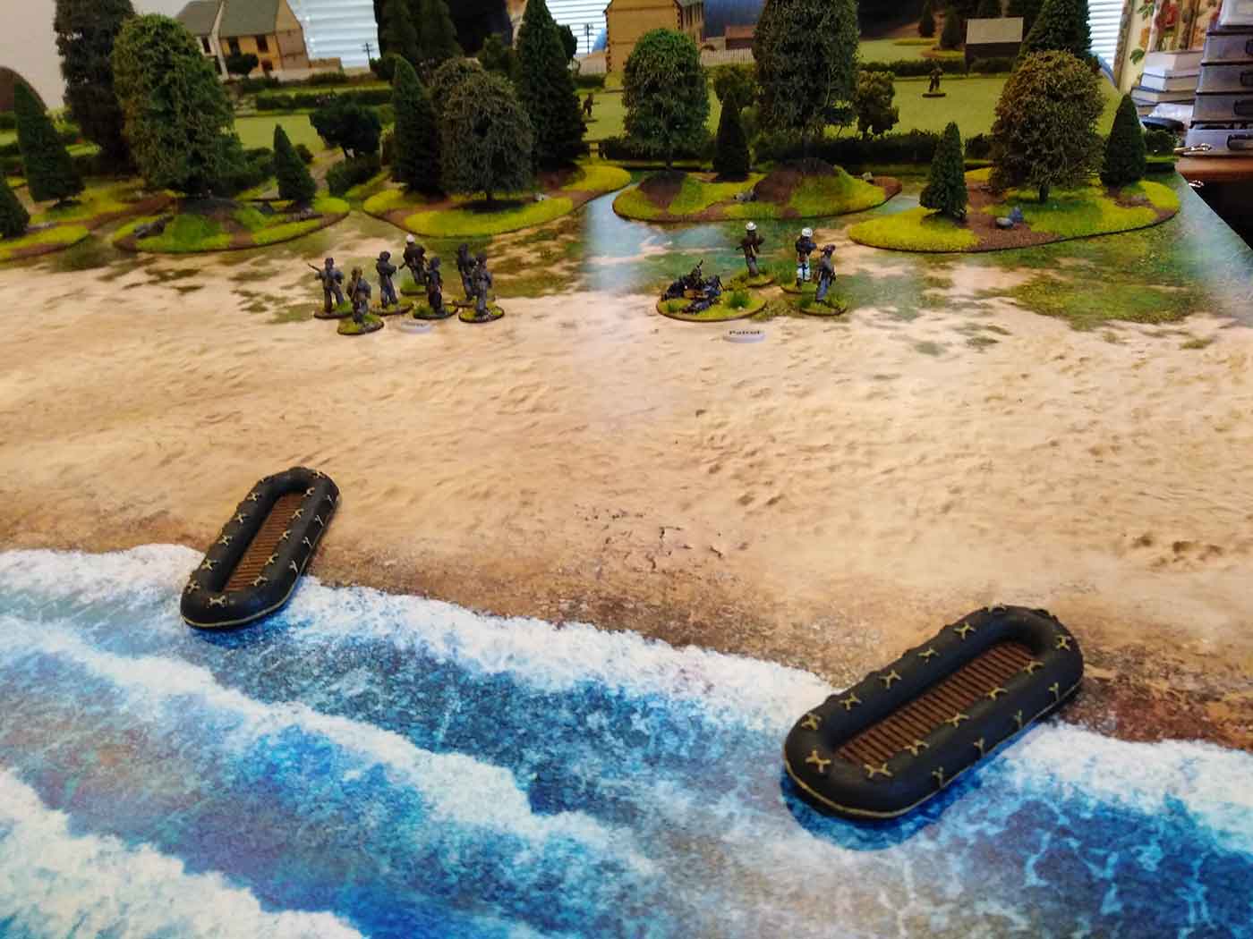 The groups started the game on the beach, at two of the corners of the table. ( The beach corner tiles with tents marking the camps)